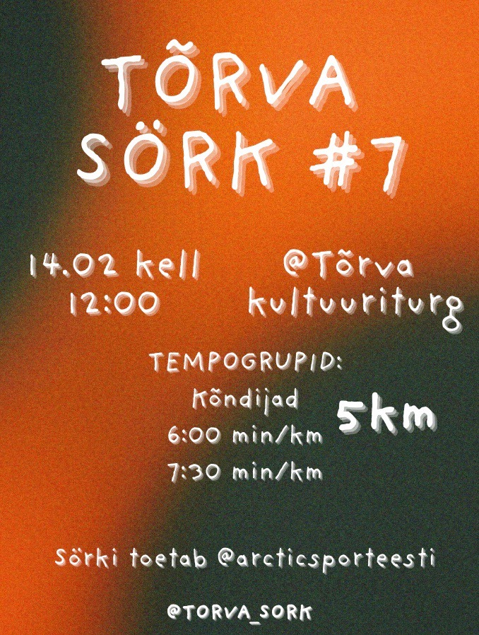 14. veebruaril kell 12.00 minnakse sörkima ja kõndima viite kilomeetrit. Kogunemine Tõrva Kultuuriturul.
